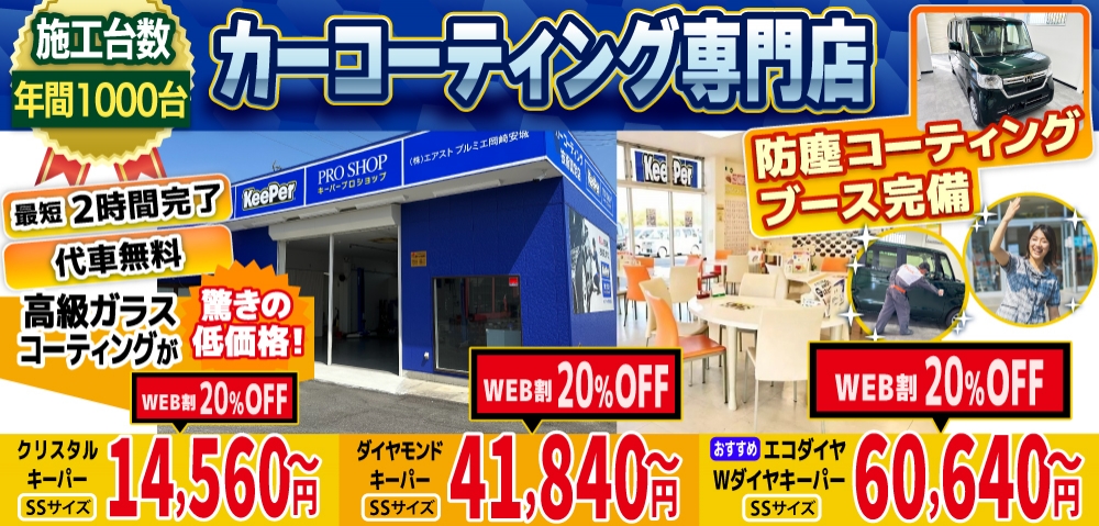 私達キーパープロショップは、安城・岡崎・高浜・西尾・知立・碧南市エリアのカーコーティング専門店として、日本ダントツのカーコーティングブランド、キーパープロショップとして認定を受けております!